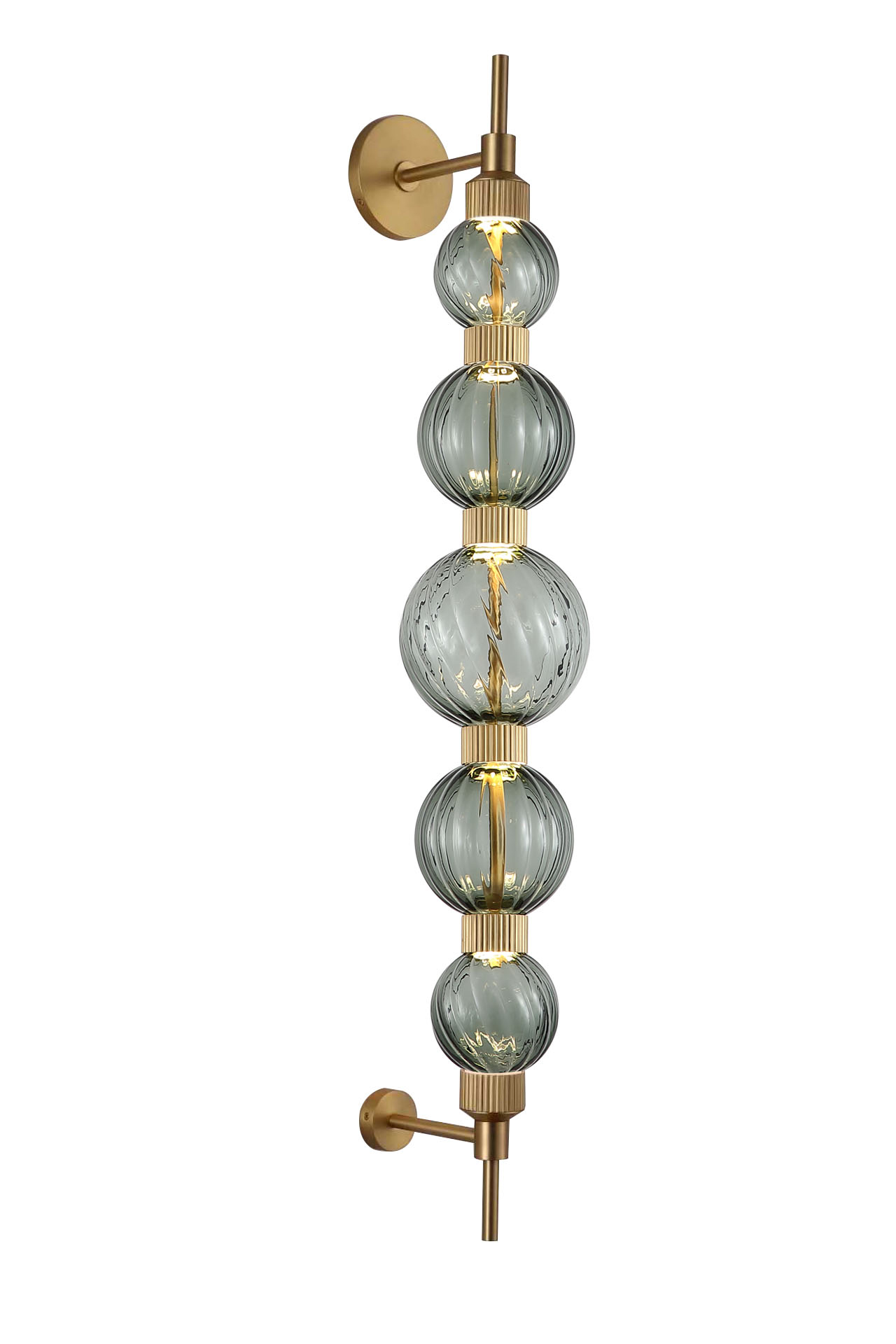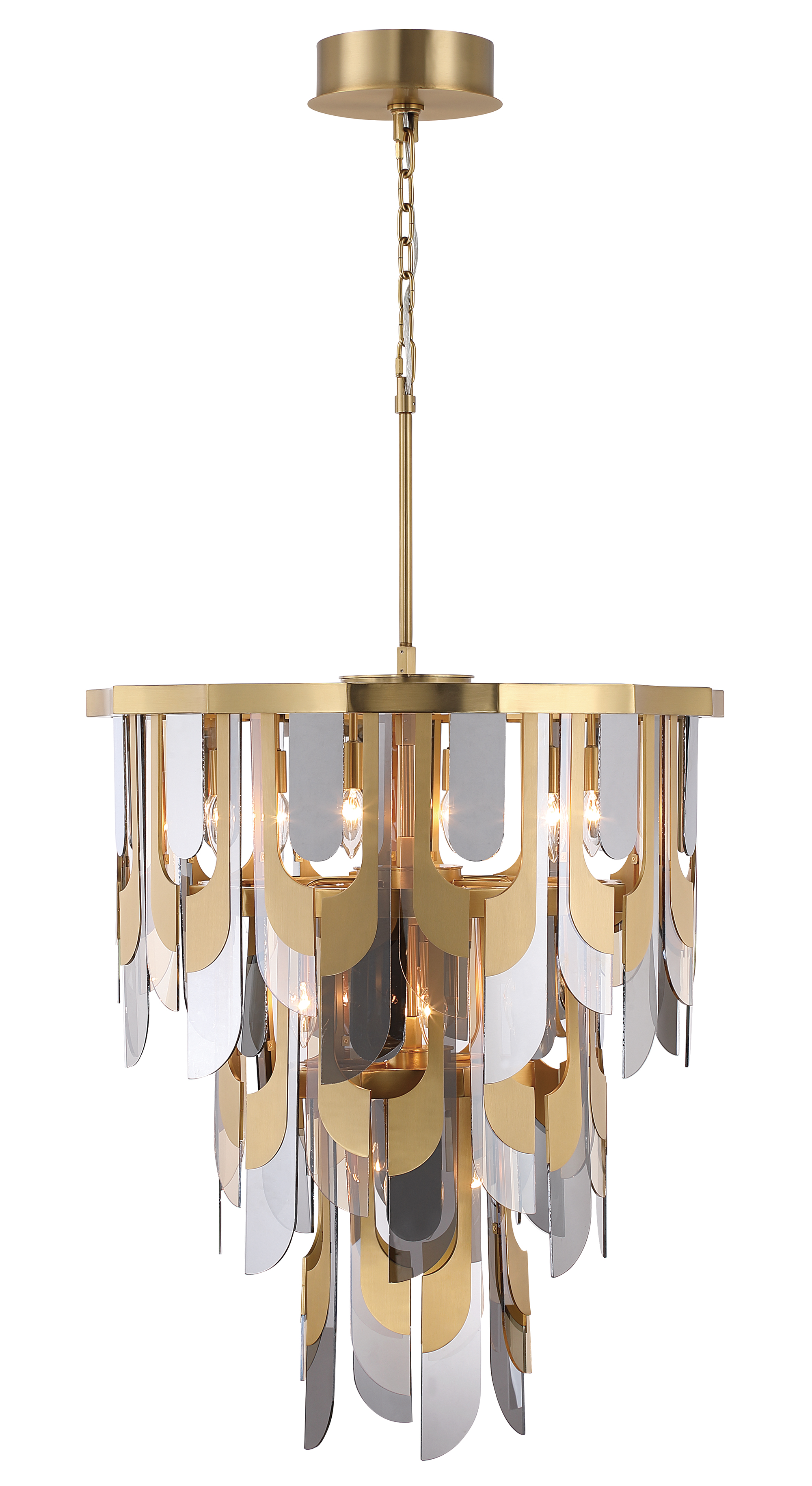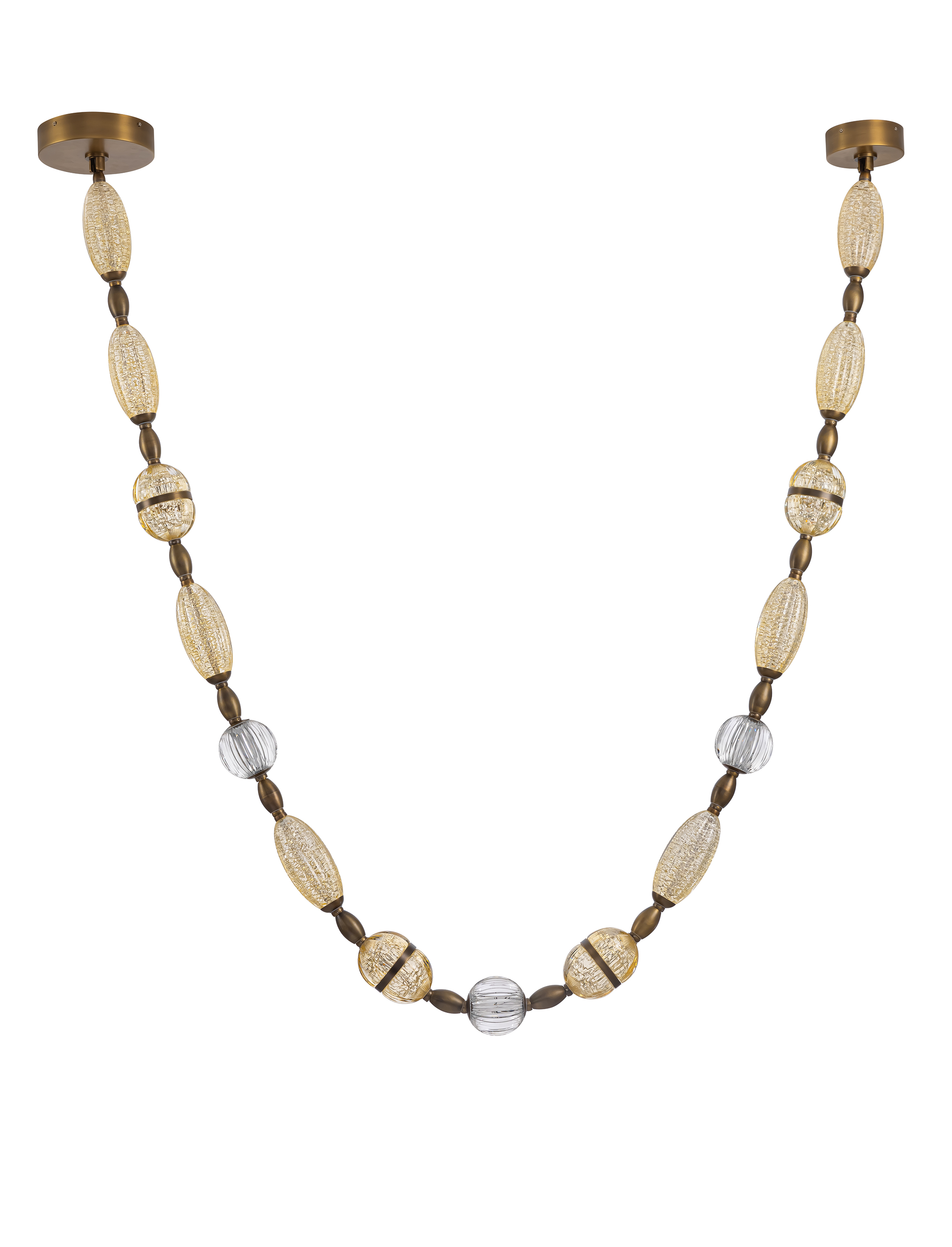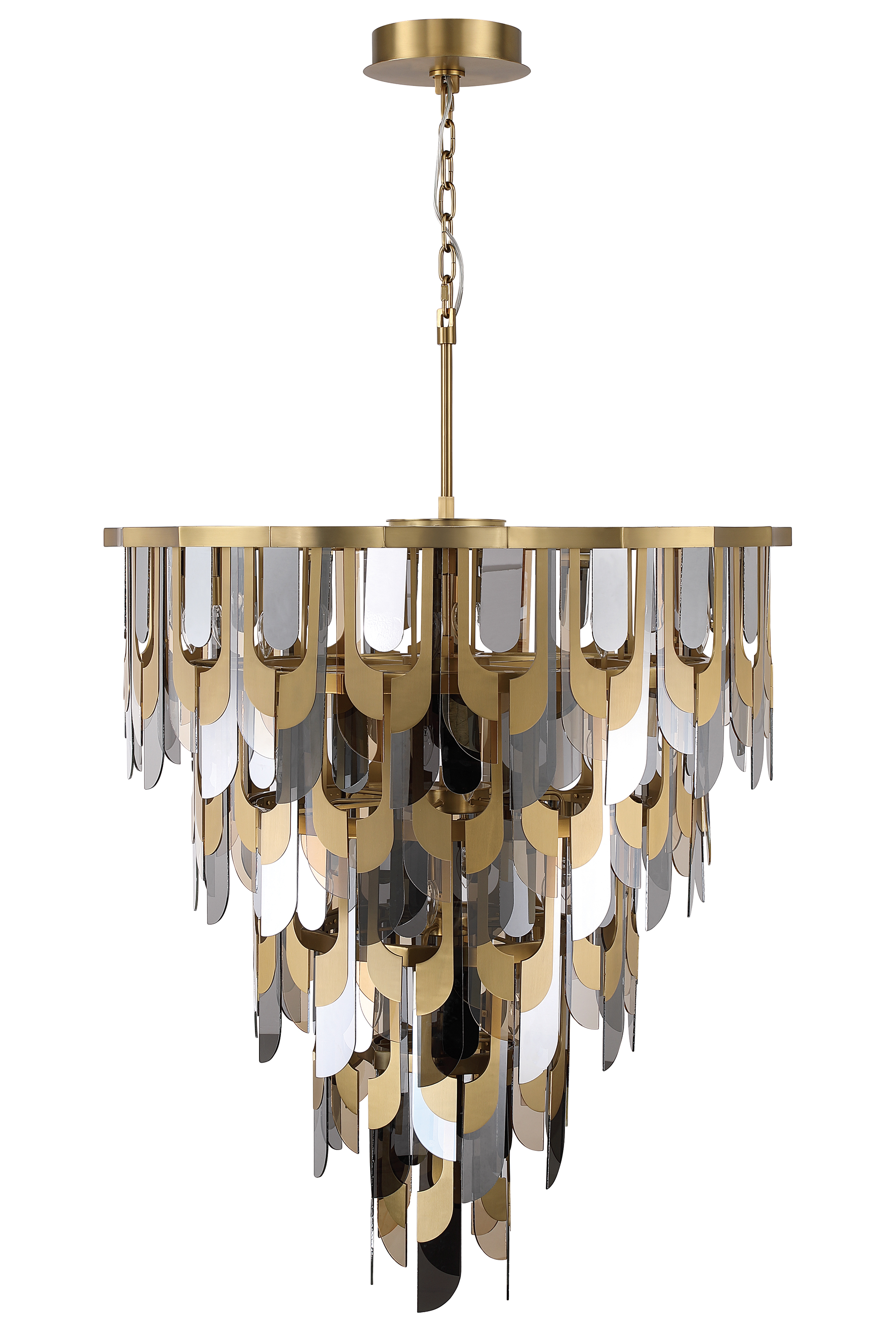 As one of our most popular custom fixtures, this new addition to our Palisades Collection features three Antique Brass sputnik chandeliers, staggered carefully to create unparalleled drama.